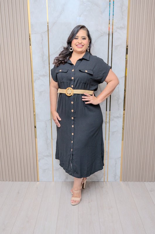 Black Short Sleeve Button Down Dress