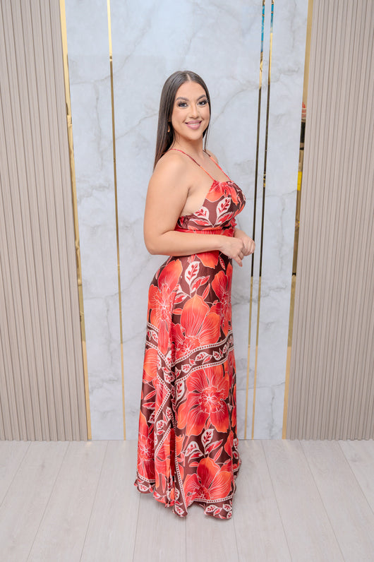 Red Floral Halter Printed Maxi Dress