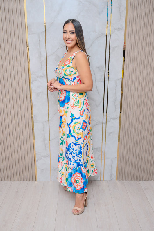 Red Multi Color Maxi Dress