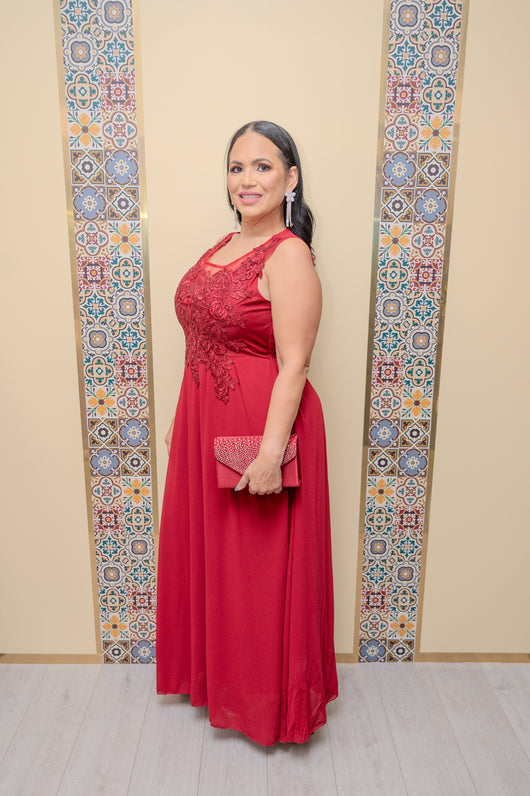 Wine Lace Detail Maxi Dress